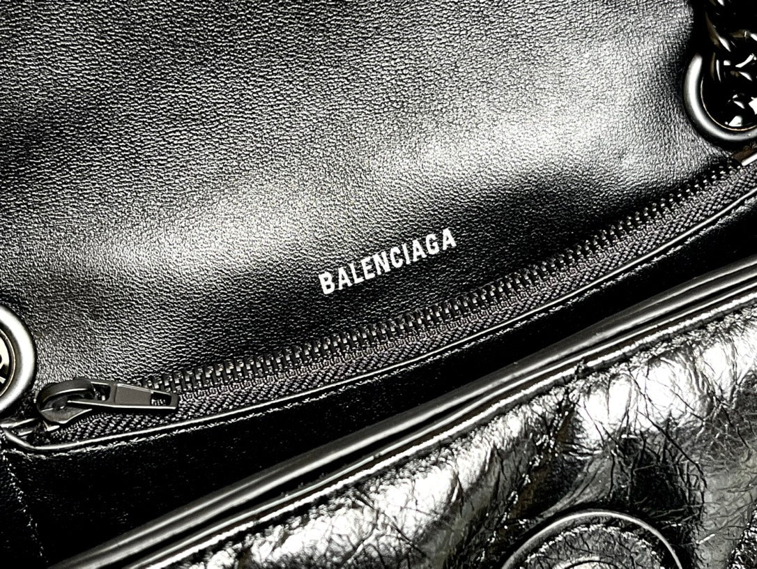 CRUSH SMALL CHAIN BAG 25 IN BLACK QUILTED CRUSHED CALFSKIN BLACK HARDWARE
