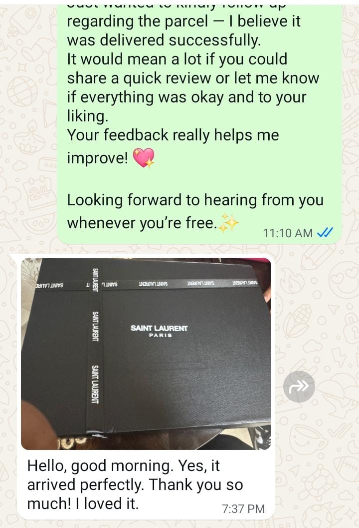 We're committed to delivering premium, handcrafted products that meet luxury standards. Every item is inspected before shipping, and we provide real photos/videos for your approval.