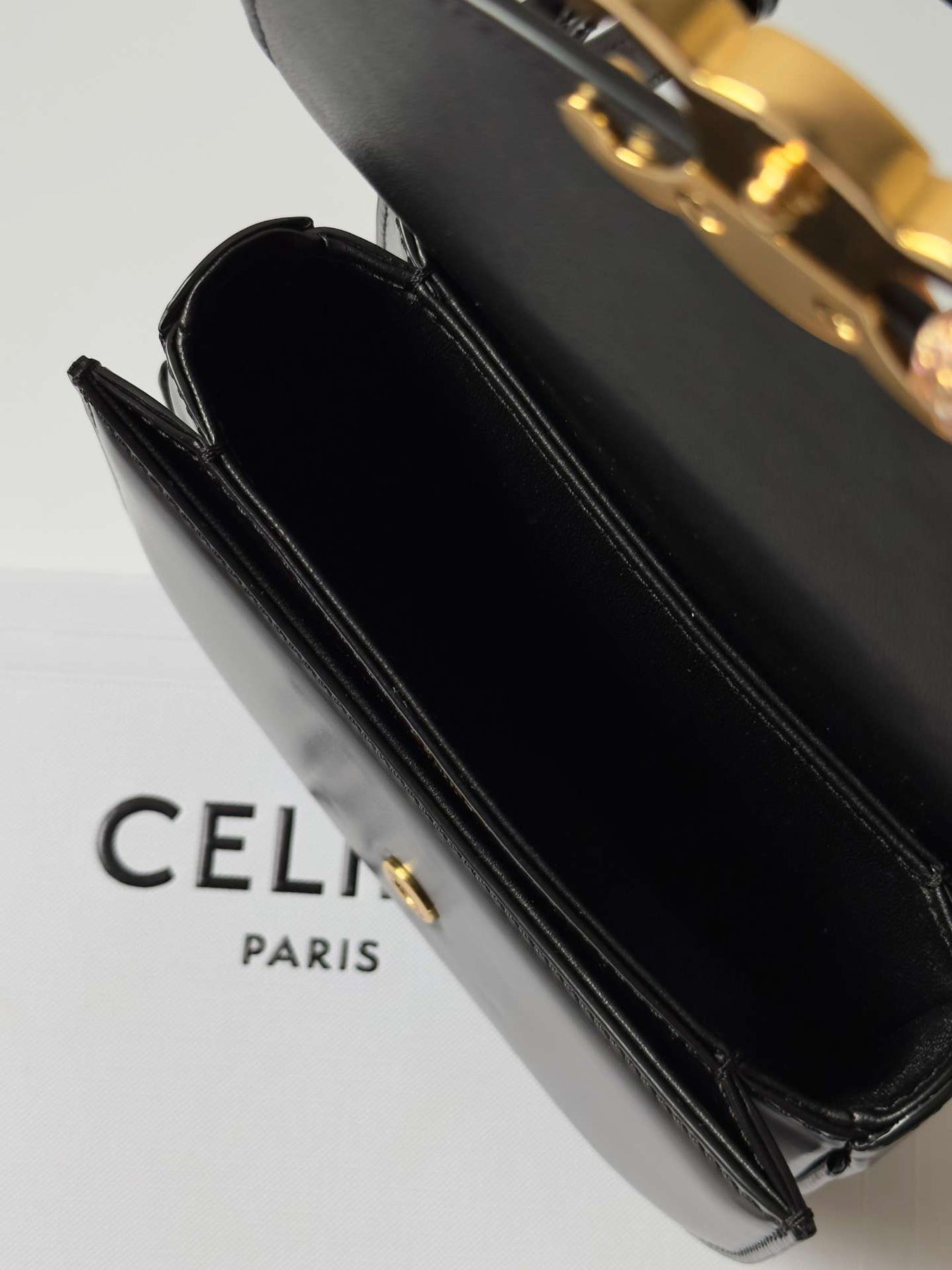 Cel*ne mini crossbody black leather strap gold lock 15.5x11cm - image 4