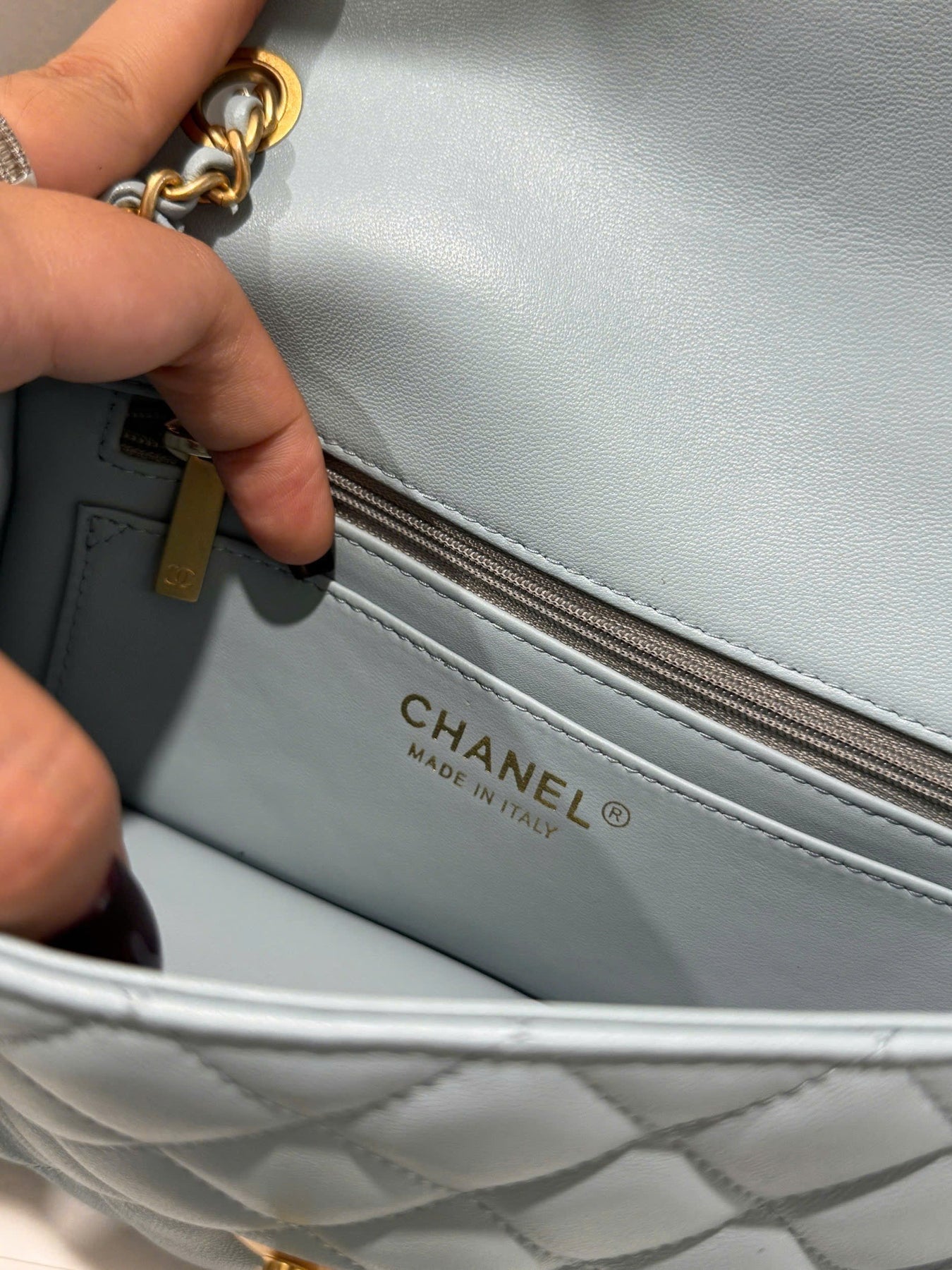 Chan*l classic bell bag handbag sheepskin blue like auth lock gold 20cm - image 8