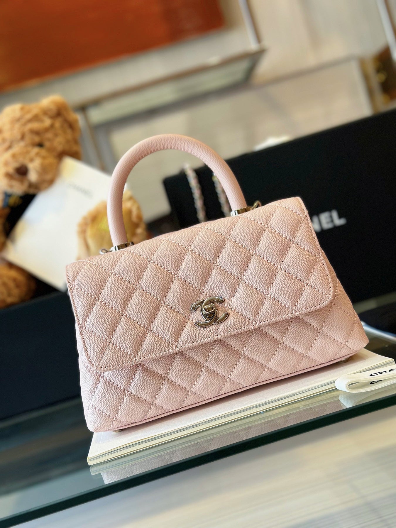 Chan*l coco handbags leather pink with silver lock 23cm - main image
