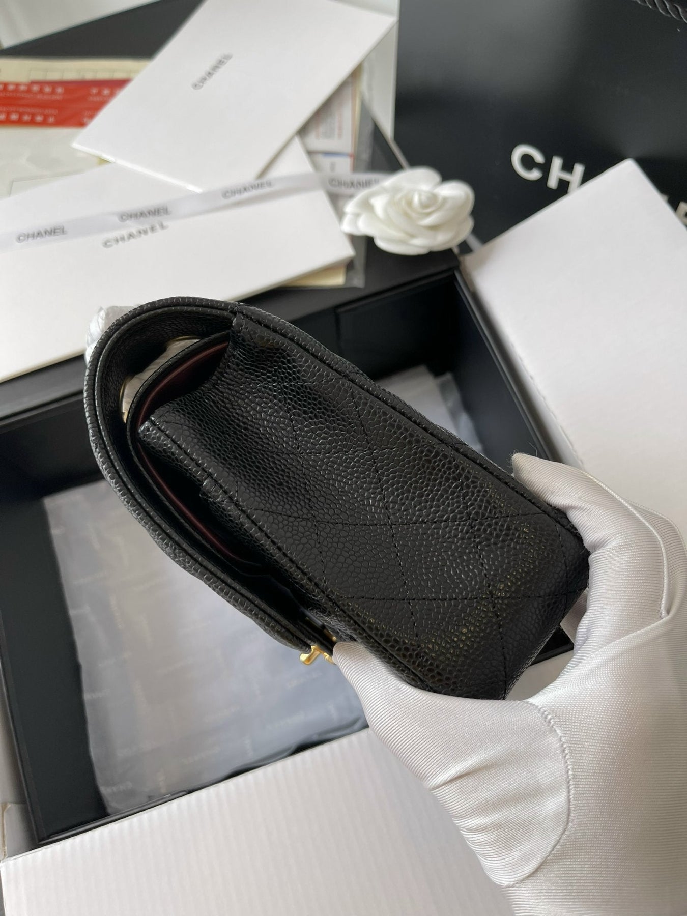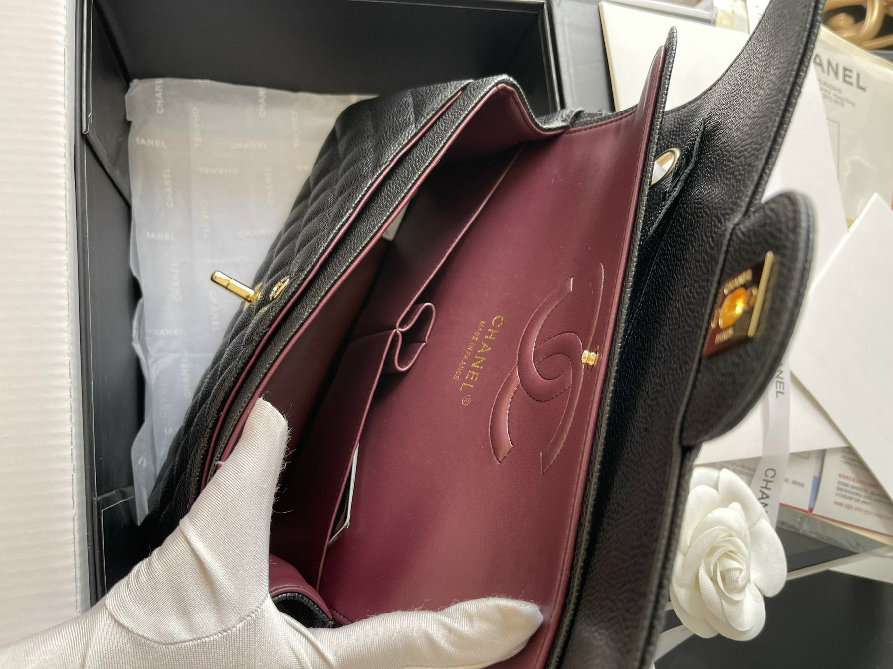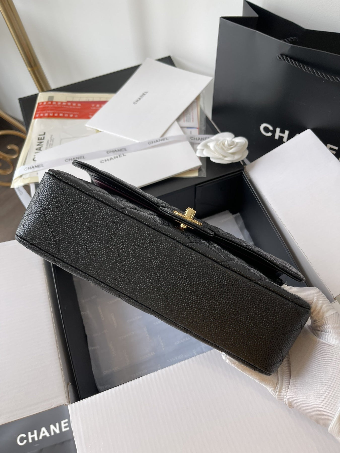 Chan*l medium classic like auth handbags cowhide black lock gold 25.5cm
