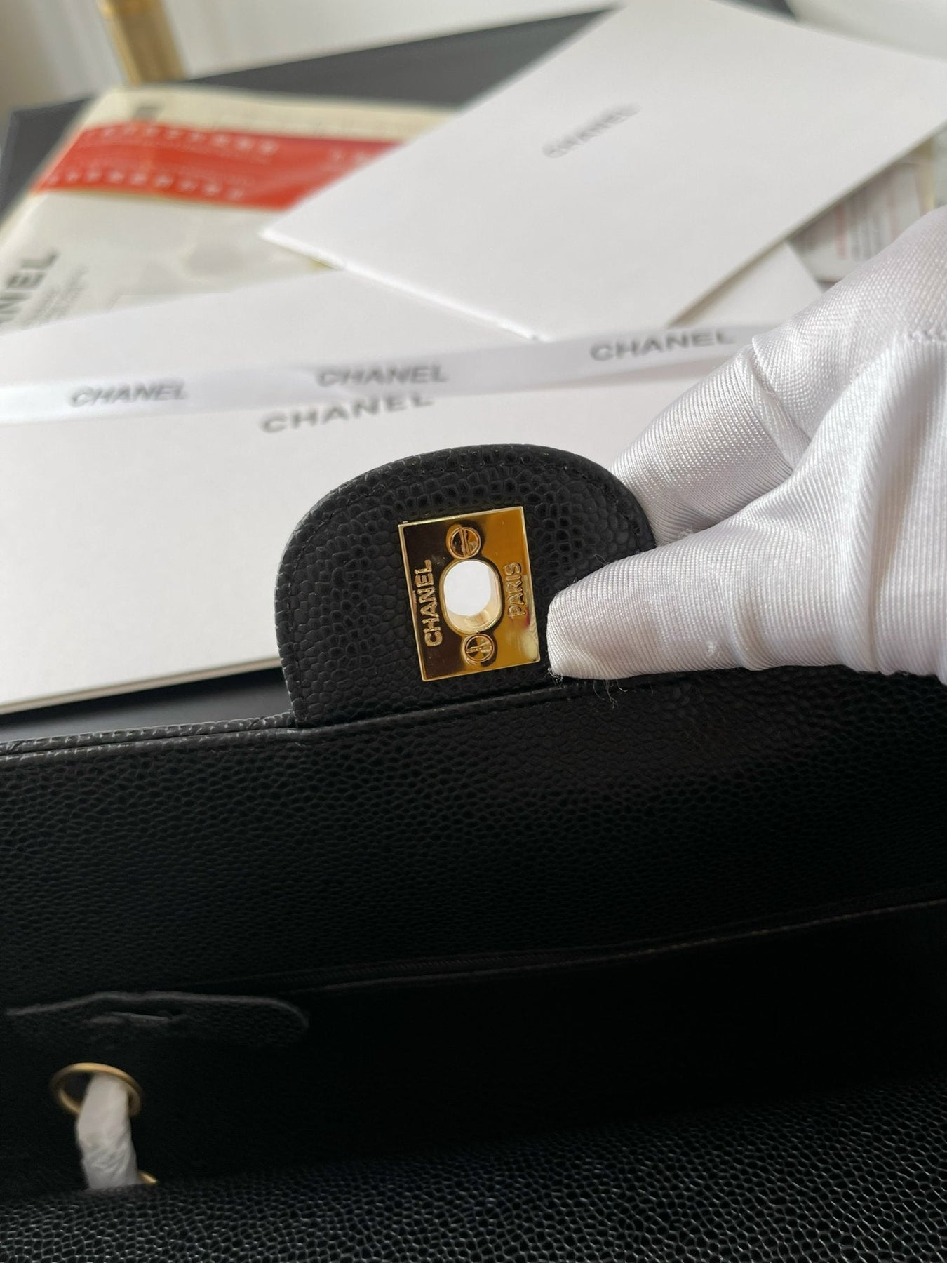 Chan*l medium classic like auth handbags cowhide black lock gold 25.5cm - image 8