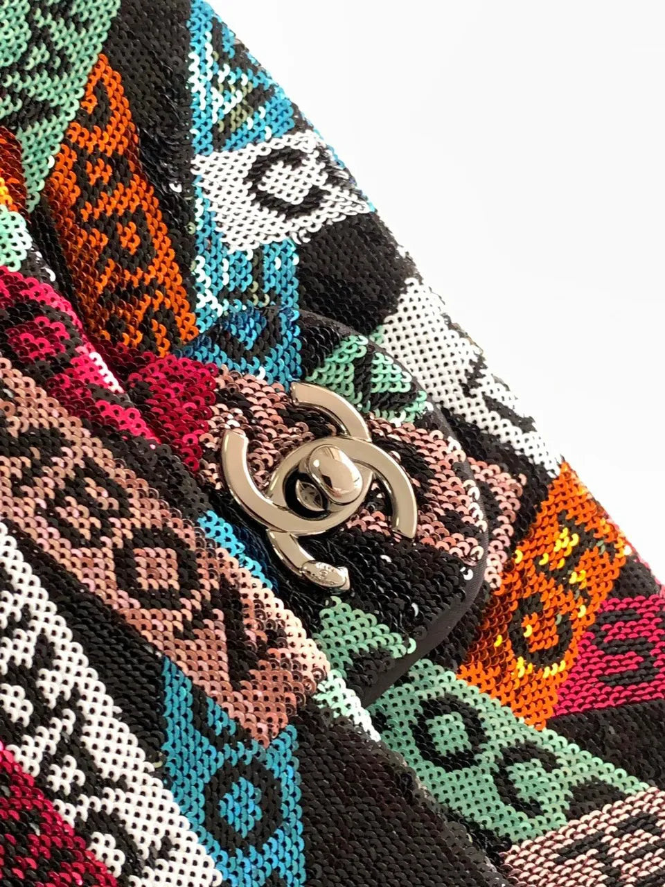 Chan*l mini pastel rainbow sequin like auth handbag 20x14x7cm - main image