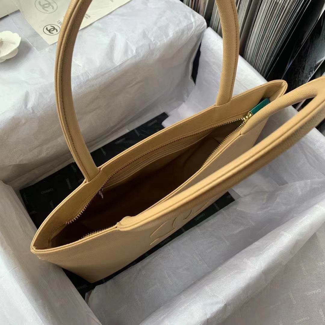 Chan*l vintage classic like auth handbags lock gold nude 30x21x8cm