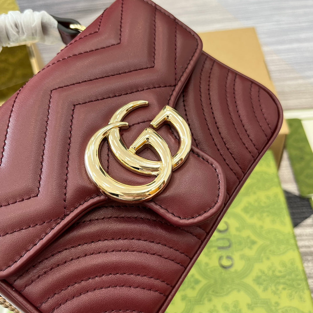 GG MARMONT 13 MINI TOP HANDLE BAG ROSSO ANCORA RED CALFSKIN