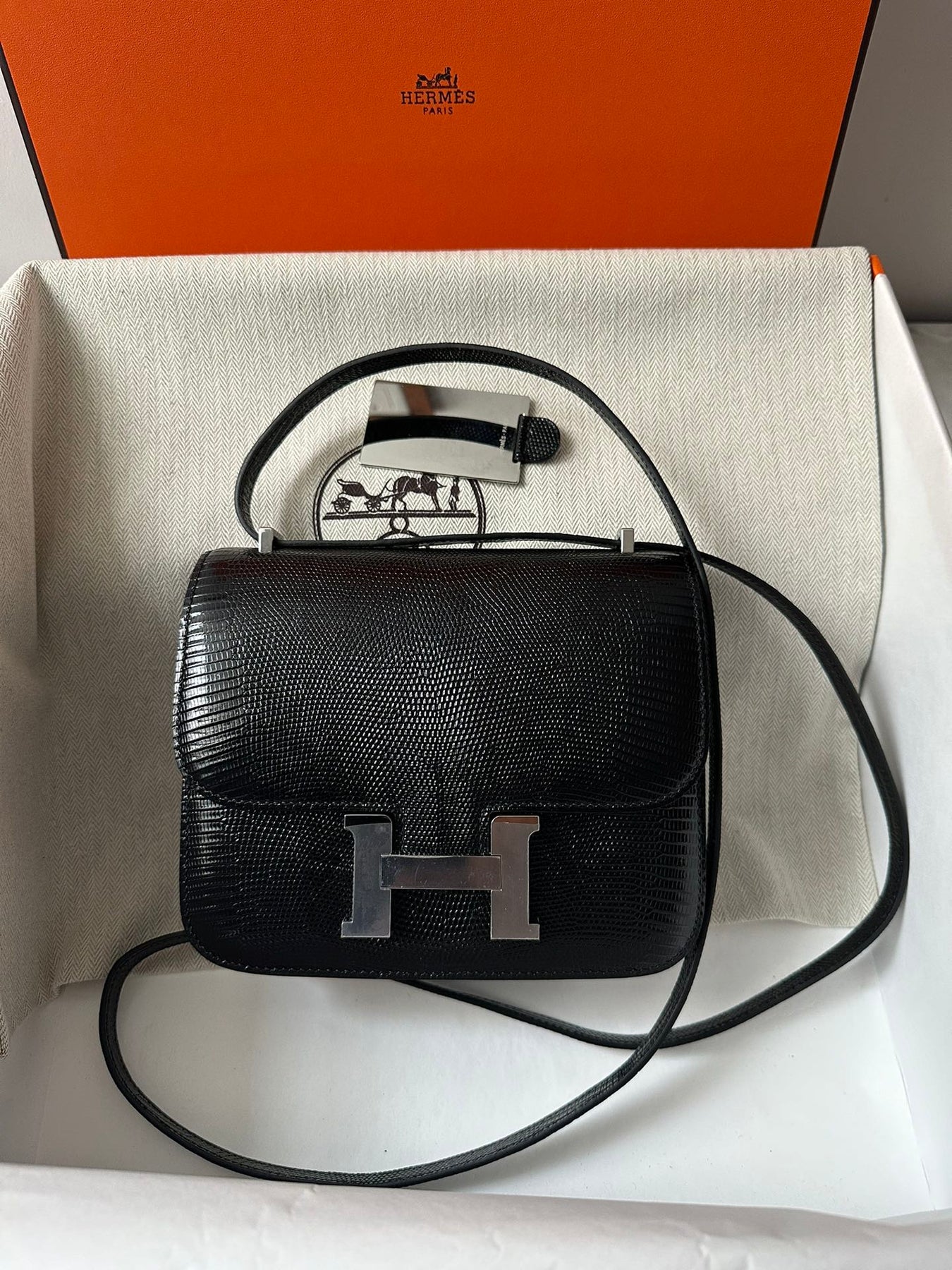CONSTANCE 18 BLACK LIZARD SILVER HARDWARE