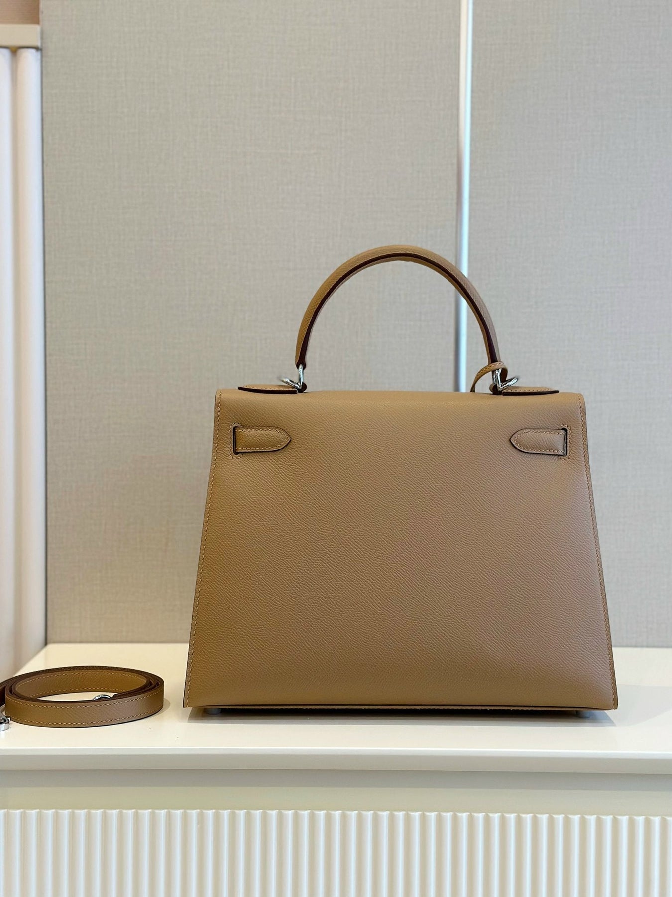 Herm*s kelly lock silver with brown handle pattern lock handbag 28cm