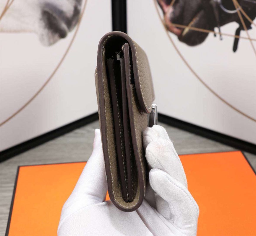 HM CLUTCH CONSTANCE 20.5 KHAKI CALFSKIN SILVER HARDWARE