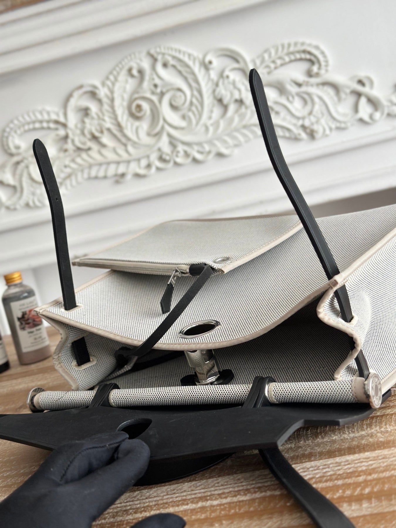 ZIP CABINE 31 BAG IN PALE GRAY CANVAS AND BLACK CALFSKIN