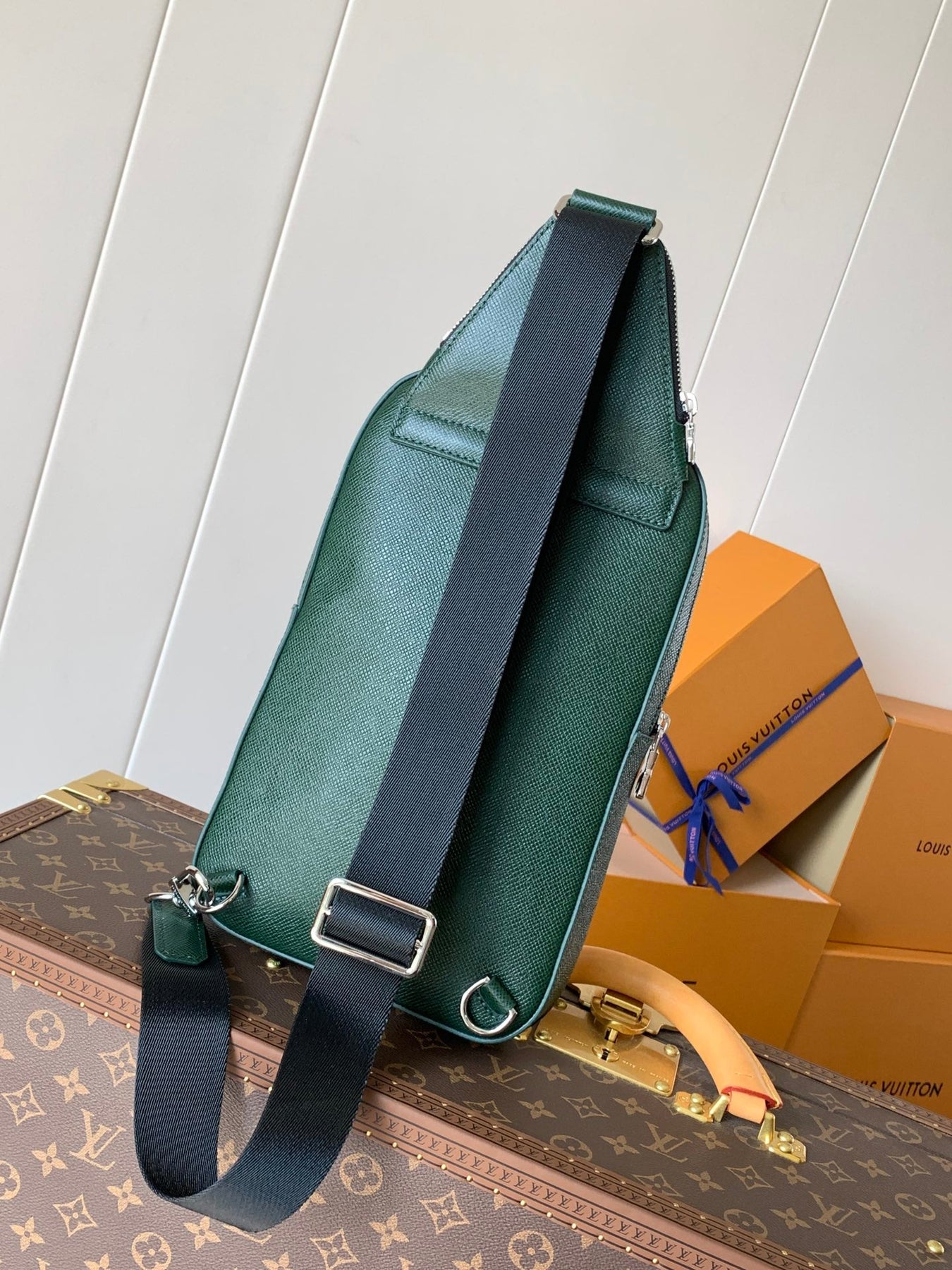 lv avenue slingbag 31 in dark green taiga leather