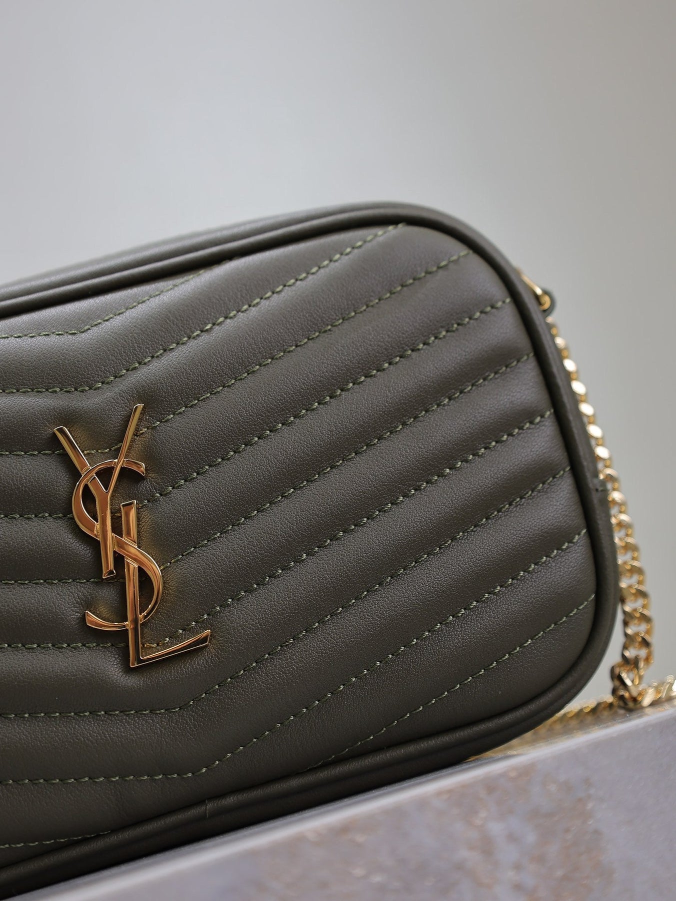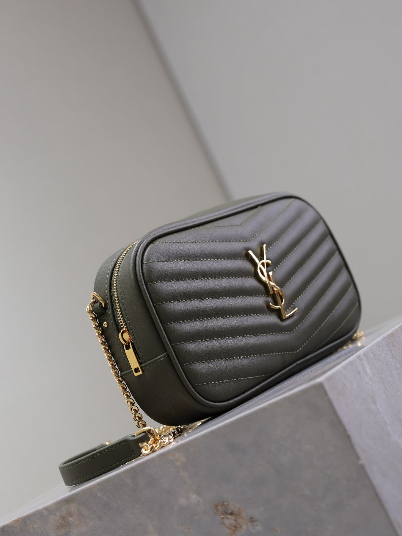 LOU MINI CAMERA BAG 18 IN KOMBU GREEN QUILTED CALFSKIN